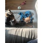 His curious and mischievous spirit led him on many adventures, often involving trips to visit the neighbors' chicken coops and brave encounters with frogs and possums. Maxx had a knack for making his way into the backyard of neighboring homes, sometimes even befriending much larger dogs along the way. His stubborn nature might have caused a few headaches, but it also brought countless moments of laughter and joy.